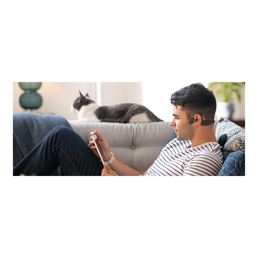 - Typ słuchawek: bezprzewodowe, przewodnictwo kostne (open-ear)